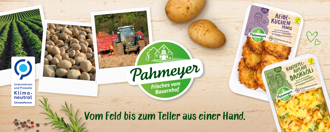 Die Kartoffelmanufaktur Pahmeyer GmbH & Co. KG ist ein innovatives und stark wachsendes Familienunternehmen mit landwirtschaftlicher Tradition. Unter dem Motto „Vom Feld bis zum Teller aus einer Hand" werden für den nationalen und internationalen Lebensmitteleinzel- und Großhandel die Kartoffeln eigens angebaut und zu frischen convenienten Kartoffelprodukten weiterverarbeitet. Knapp 200 Mitarbeiter verbinden die Strukturen der Landwirtschaft, Produktion und Verwaltung und arbeiten täglich Hand in Hand an höchster Qualität.