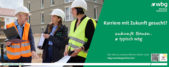 Sie arbeiten bei unserer Tochtergesellschaft WBG KOMMUNAL GmbH. Die 100%ige Tochter der wbg Nürnberg wurde 2009 gegründet, um die Stadt Nürnberg bei der Entwicklung und Umsetzung kommunaler Bauprojekte zu unterstützen.